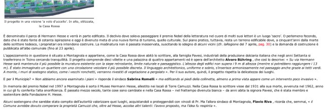 Un interessante articolo su La Regione del 12 Aprile 2012, dove possiamo leggere i primi commenti dell’Architetto istante del progetto, dell’attuale Sindaco di Collina d’Oro e del suo predecessore ai tempi della mancata salvaguardia del terreno da parte dell’autorità.